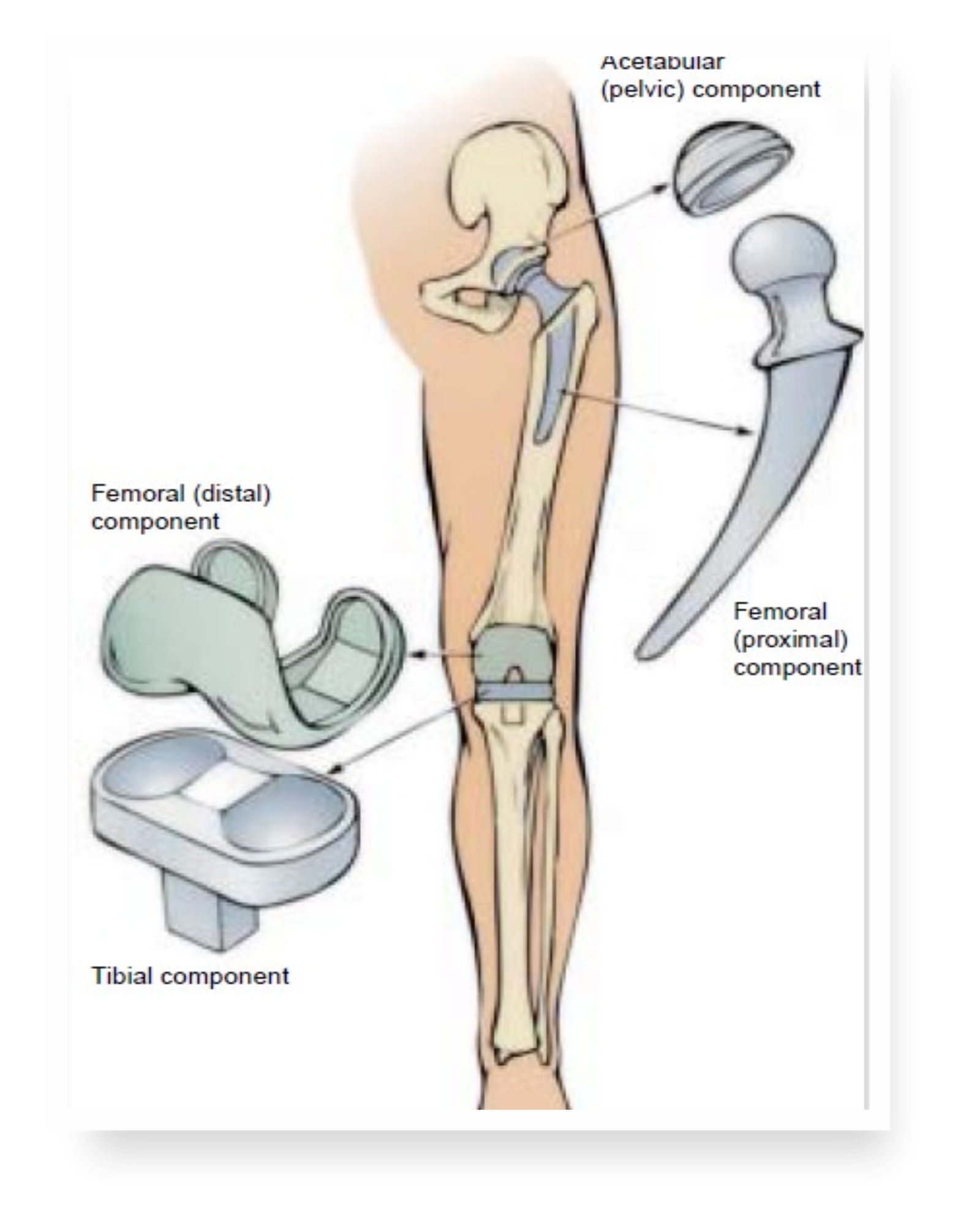 When only some of the joint is damaged, a surgeon may be able to repair or replace just the damaged parts. When the entire joint is damaged, a total joint replacement is done. To replace a total hip or knee joint, a surgeon removes the diseased or damaged parts and inserts artificial parts, called prostheses or implants.